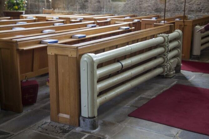 We planned our route over a cappuccino, using an out of date and a very small scale map before going through an adjoining gate into the Churchyard of the parish Church of St Peter and Paul. It has stood there for over a thousand years and is full of the many features we have found in other churches on our walks. What impresses us the most however, is the central heating system.